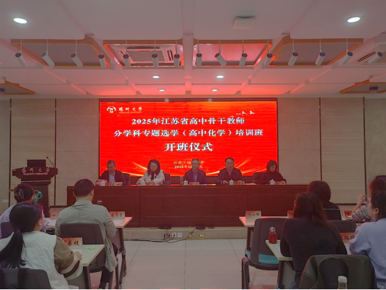 11月1日,2025年江苏省高中化学骨干教师培训项目在扬州大学瘦西湖校区顺利开班。江苏省教育科学研究院数字教育研究所所长、教育评价与质量检测中心主任赵华,扬州大学化学与材料学院党委书记娄金海,扬州大学继续教育学院副院长王莉出席开班仪式。培训项目专家组成员吕琳副教授、景崤壁副教授,工作人员以及来自全省的100名高中化学骨干教师共同参加。