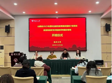 为深化职业教育改革,加强旅游类高素质“双师型”教师队伍建设,赋能山西文旅产业高质量发展,2025年12月22日,由山西省教育厅主办、我校承办的“山西省2025年职业院校教师素质提高计划项目——旅游类高职'双师型'教师专题研修班”在扬州大学顺利开班。
